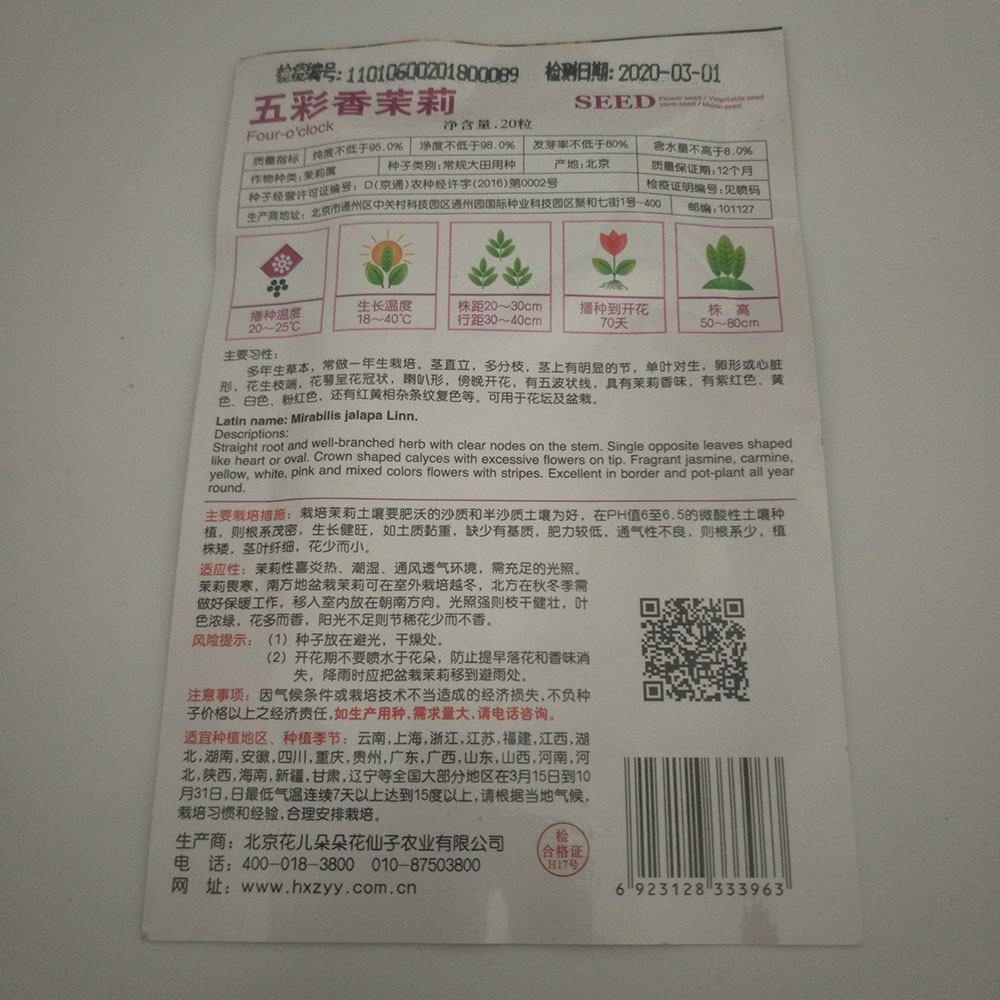 four o clock seeds 20 seeds/bags