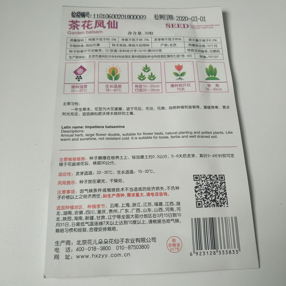 Garden balsam seeds 30 seeds/bags