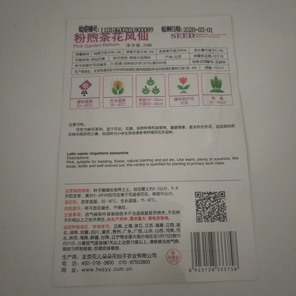 Pink garden balsam seeds 20 seeds/bags