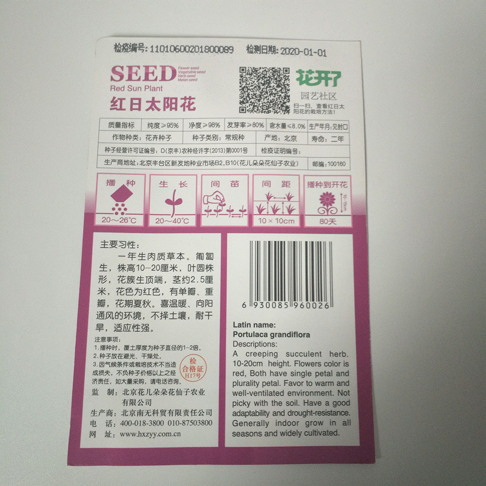 Germination rate:85% Purity:90% neatness:95% package:Small bags