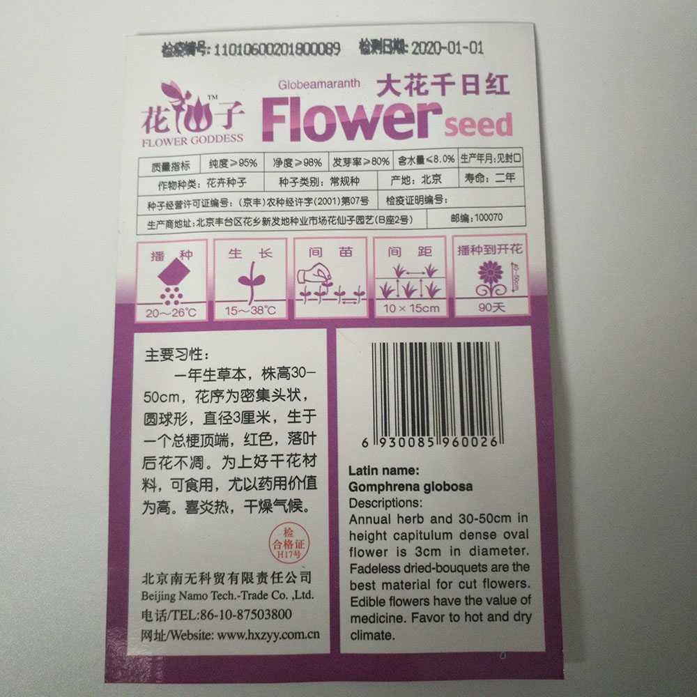 Germination rate:85% Purity:90% neatness:95% package:Small bags