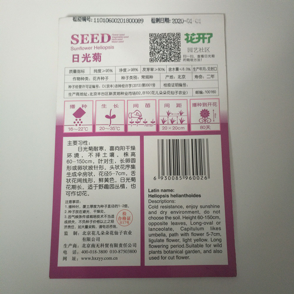 Germination rate:85% Purity:90% neatness:95% package:Small bags