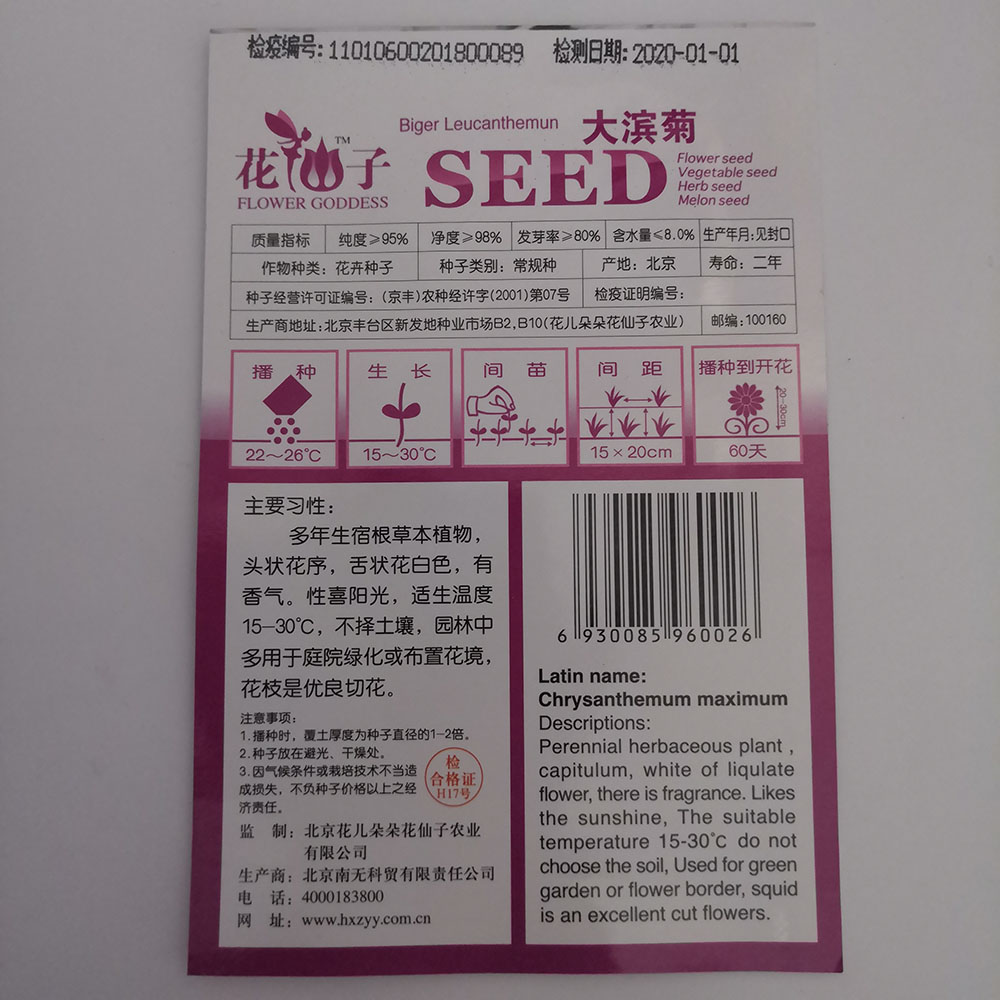 Germination rate:85% Purity:90% neatness:95% package:Small bags