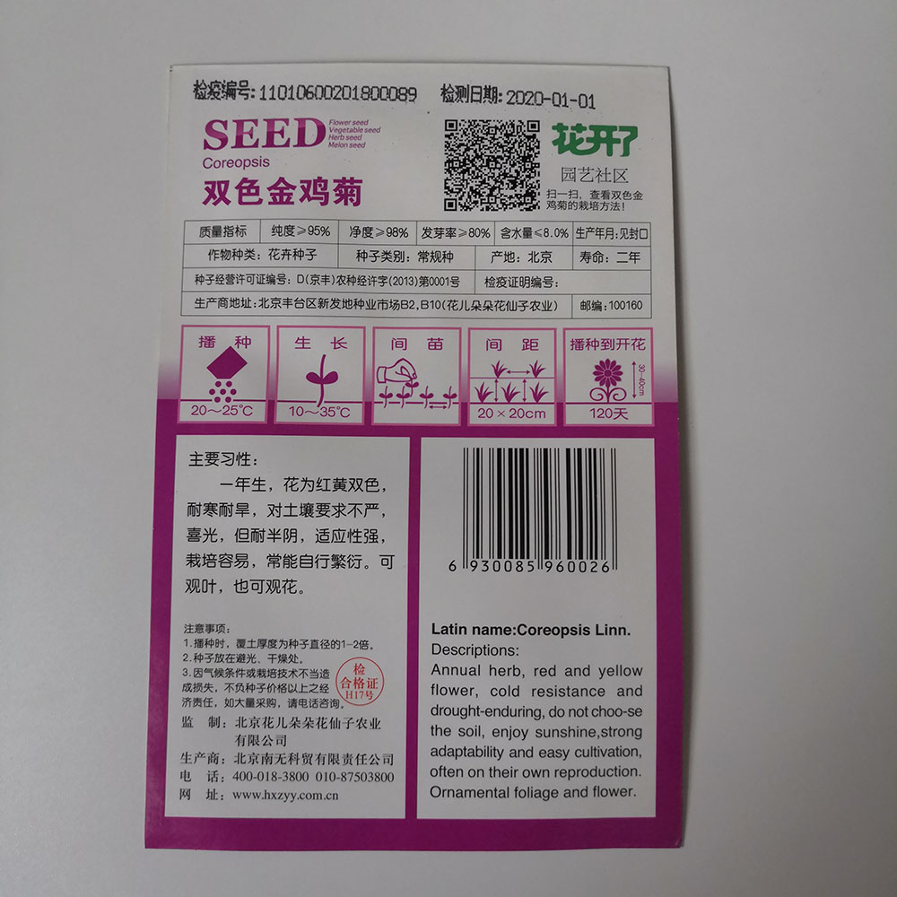 Germination rate:85% Purity:90% neatness:95% package:Small bags