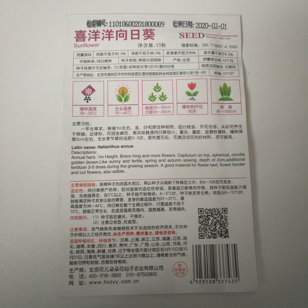 Germination rate:85% Purity:90% neatness:95% package:Small bags