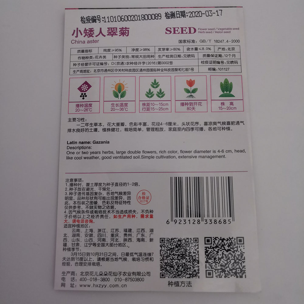 Germination rate:85% Purity:90% neatness:95% package:Small bags