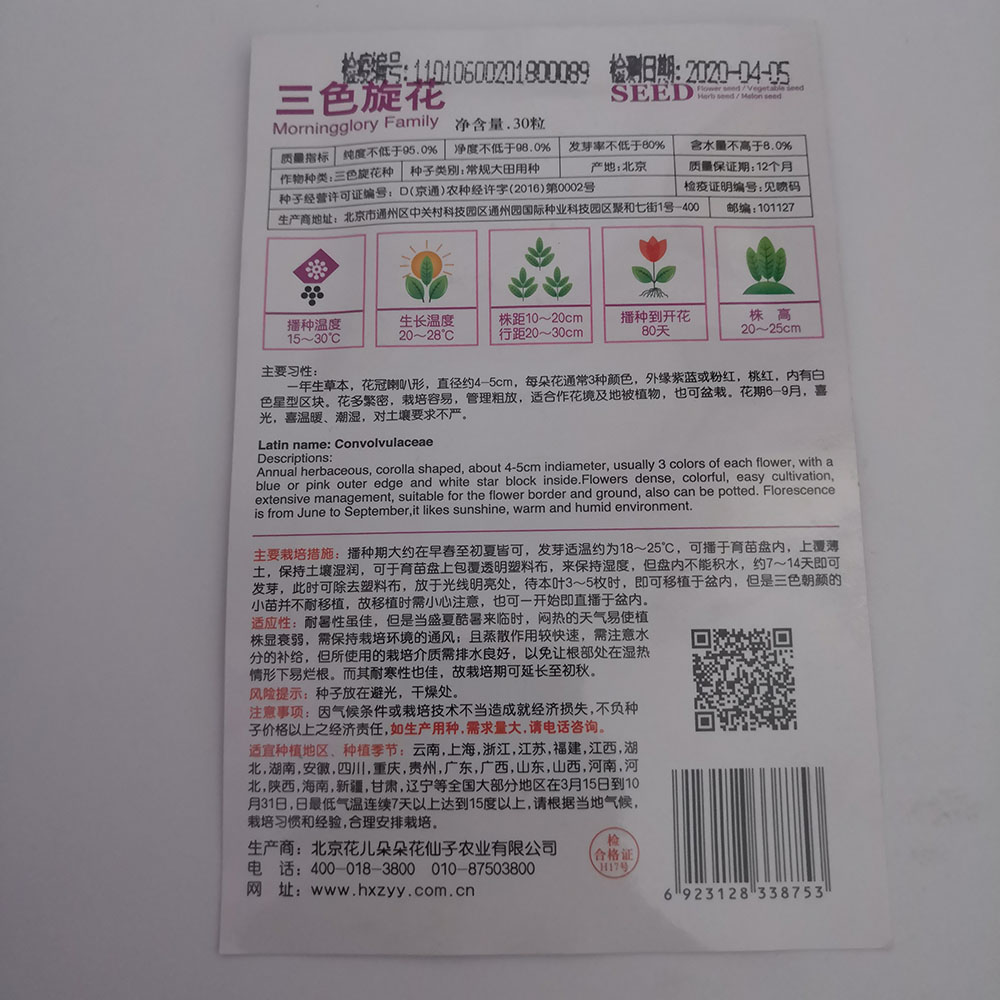 3 color morning glory seeds 30 seeds/bags