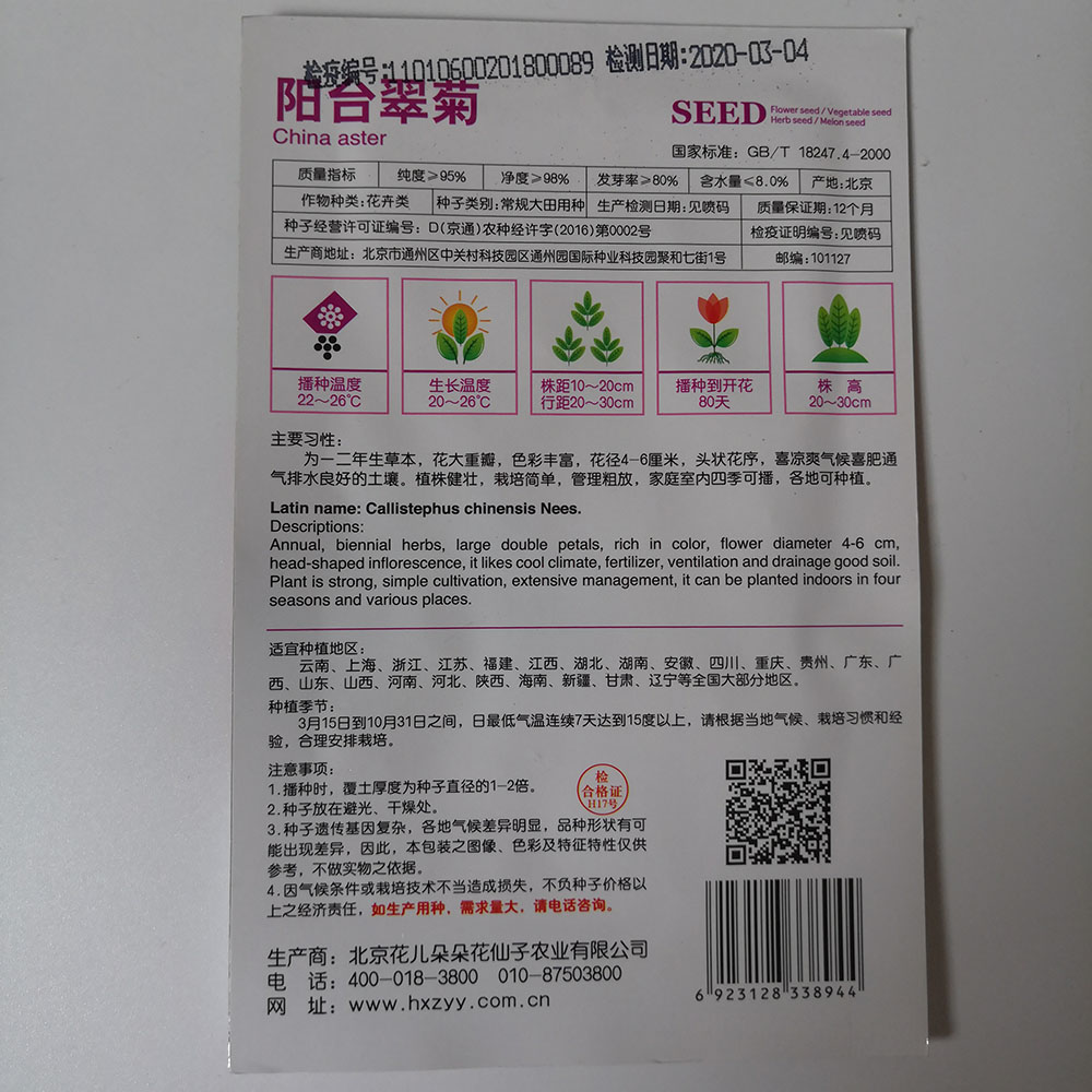 China aster seeds 50 seeds/bags