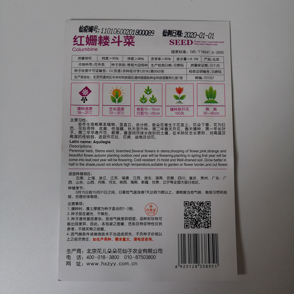Germination rate:85% Purity:90% neatness:95% package:Small bags