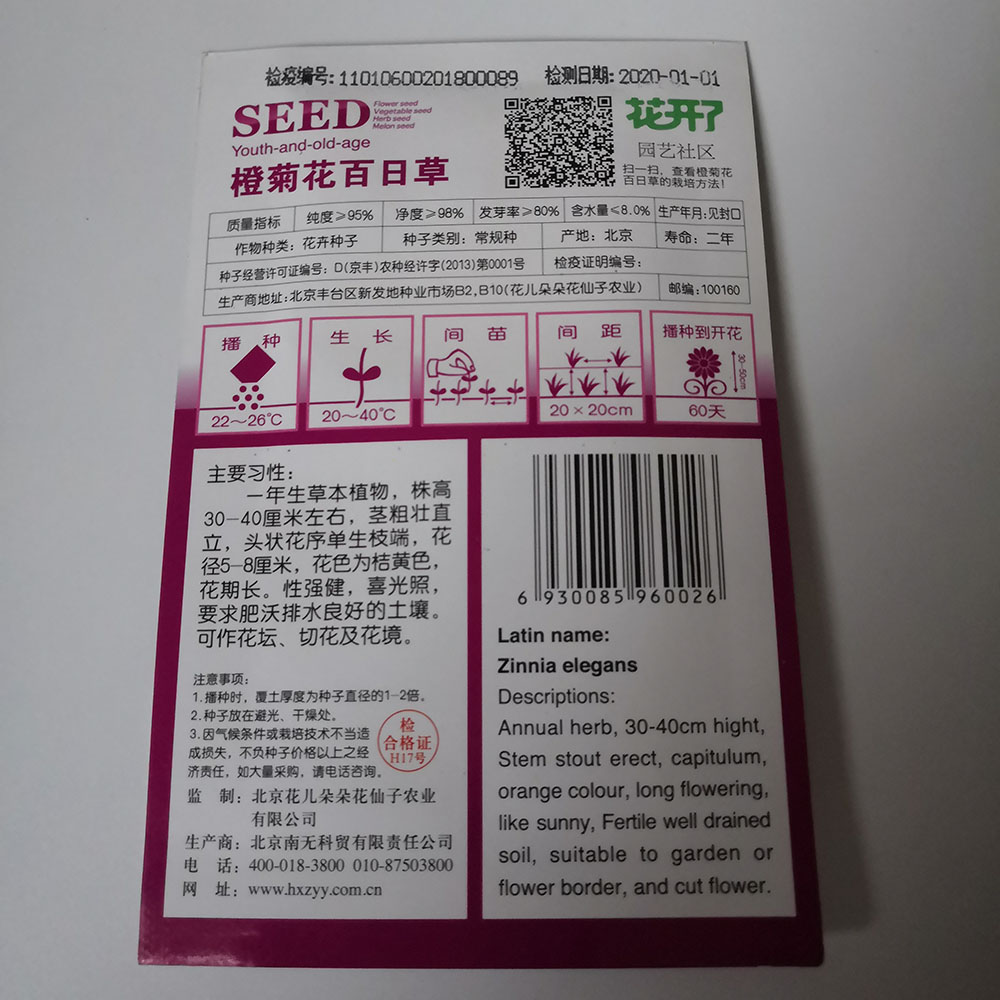 Orange zinnia elegans seeds 50 seeds/bags