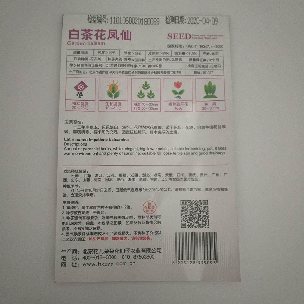 White garden balsam seeds 20 seeds/bags