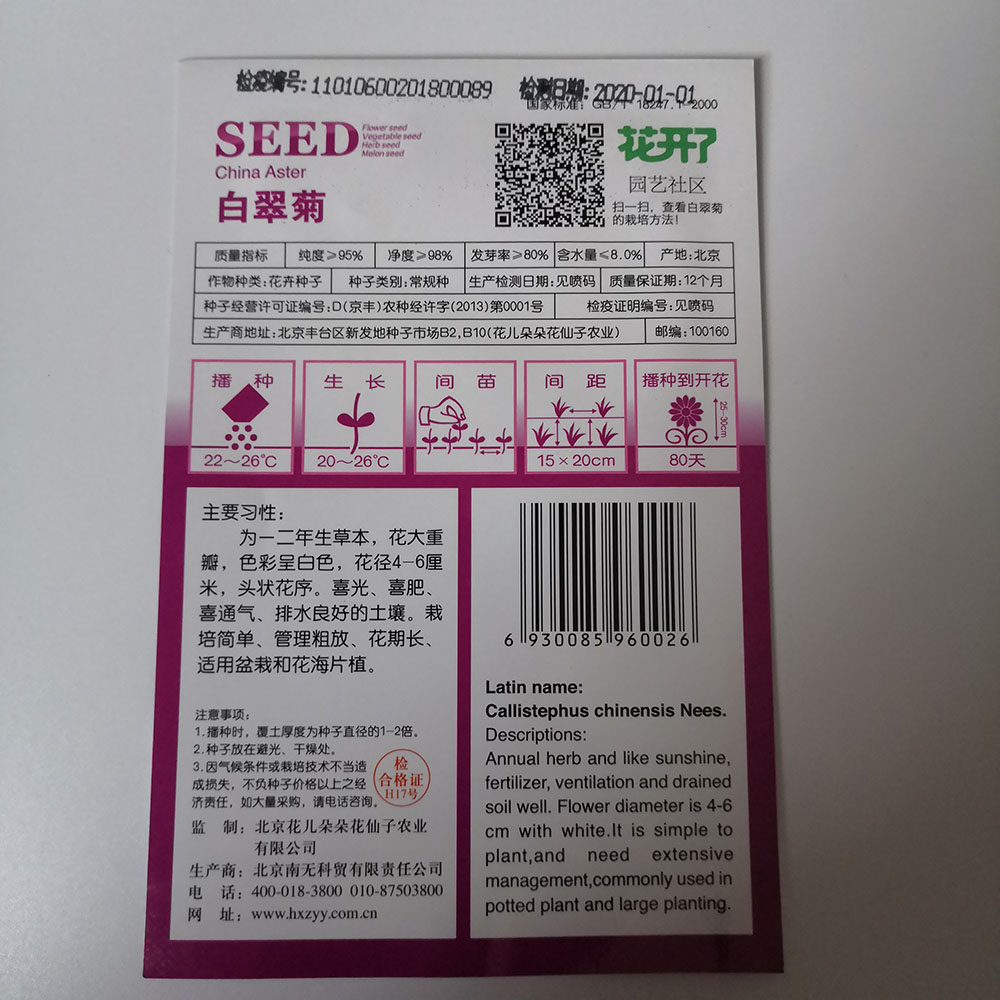 Germination rate:85% Purity:90% neatness:95% package:Small bags