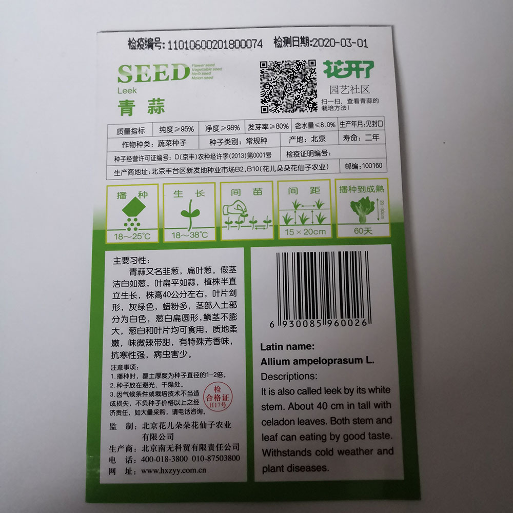 Germination rate:85% Purity:90% neatness:95% package:Small bags