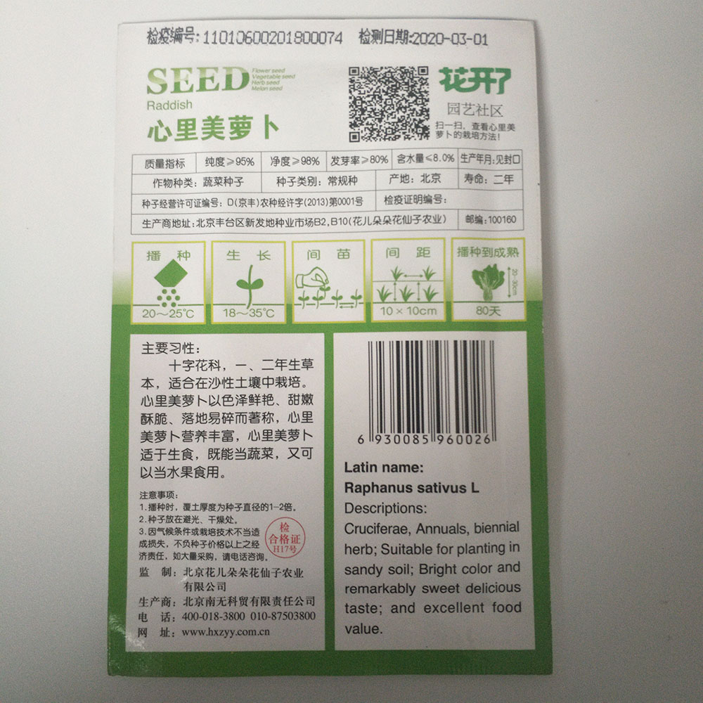 Germination rate:85% Purity:90% neatness:95% package:Small bags