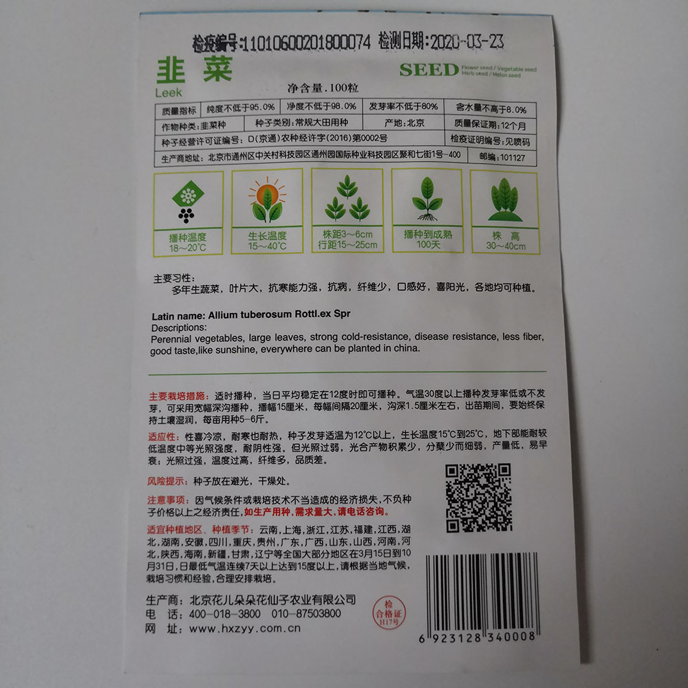 Germination rate:85% Purity:90% neatness:95% package:Small bags