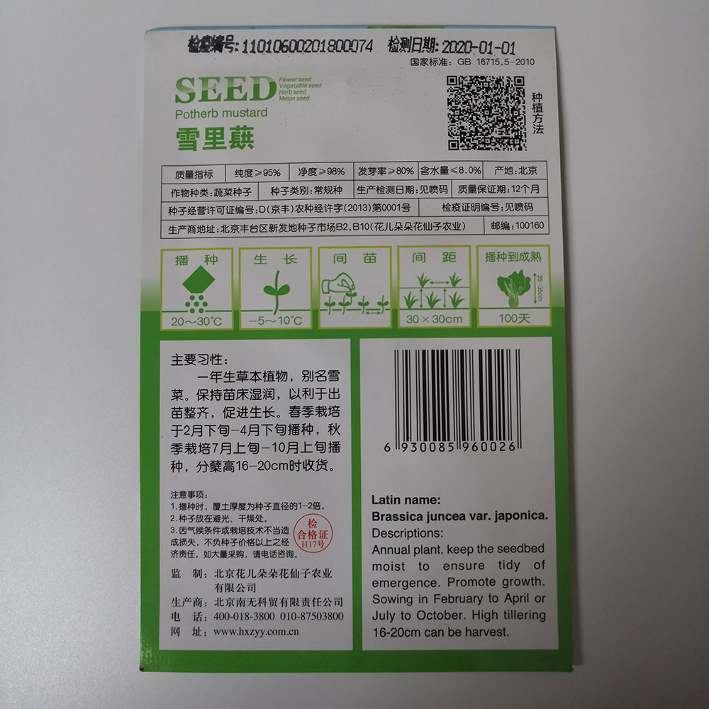 potherb mustard seeds 50 seeds/bags