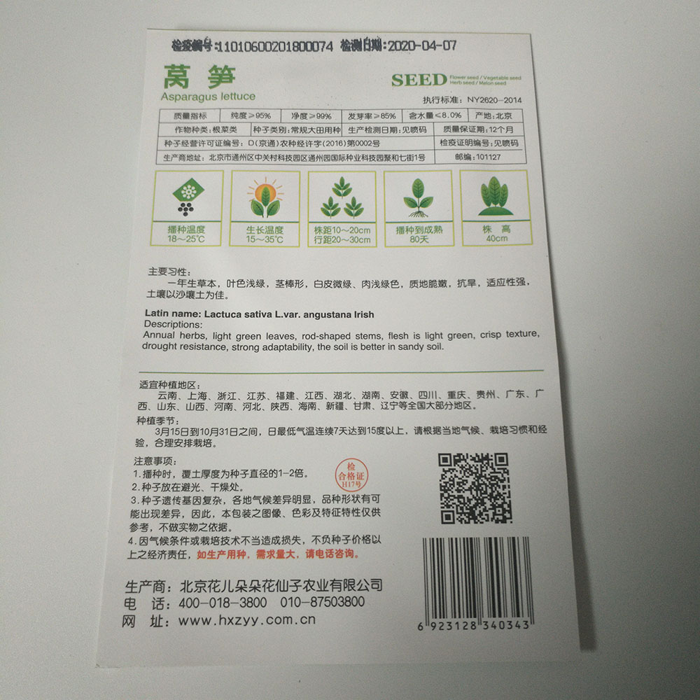 asparagus lettuce seeds 30 seeds/bags