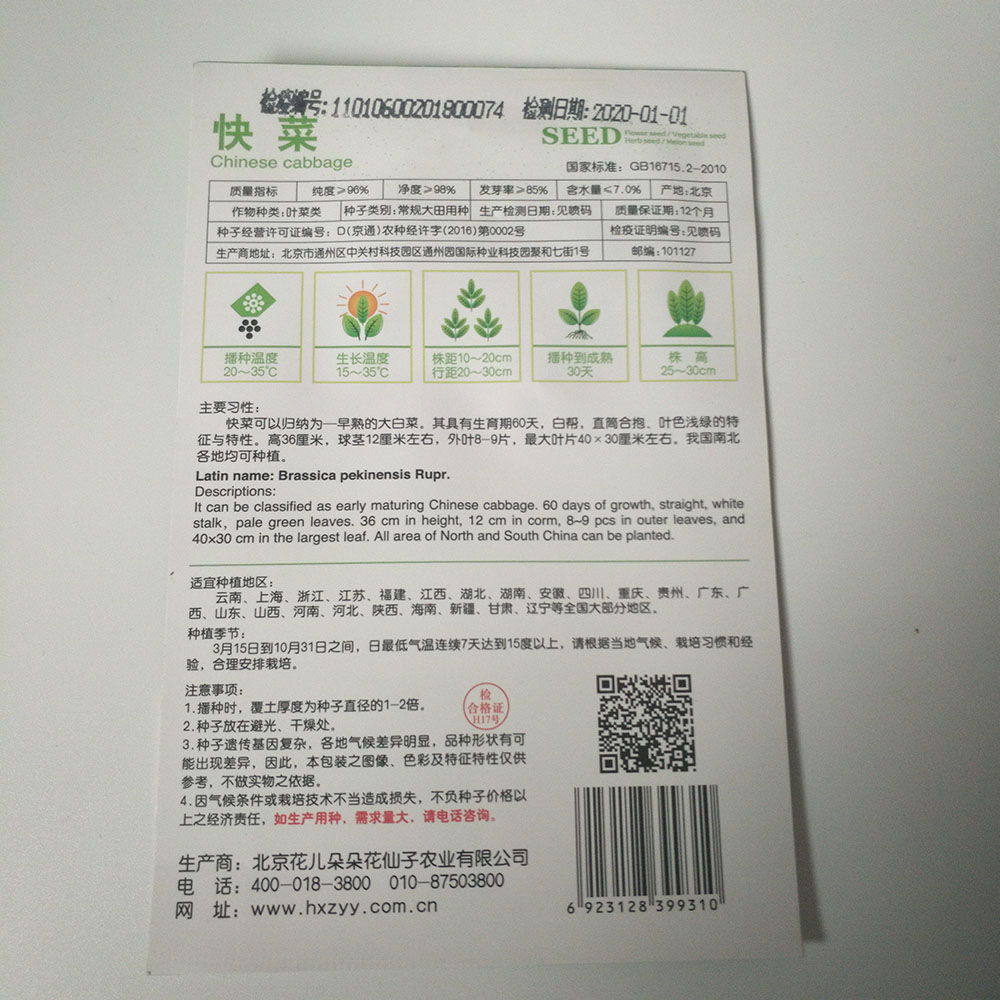 Germination rate:85% Purity:90% neatness:95% package:Small bags