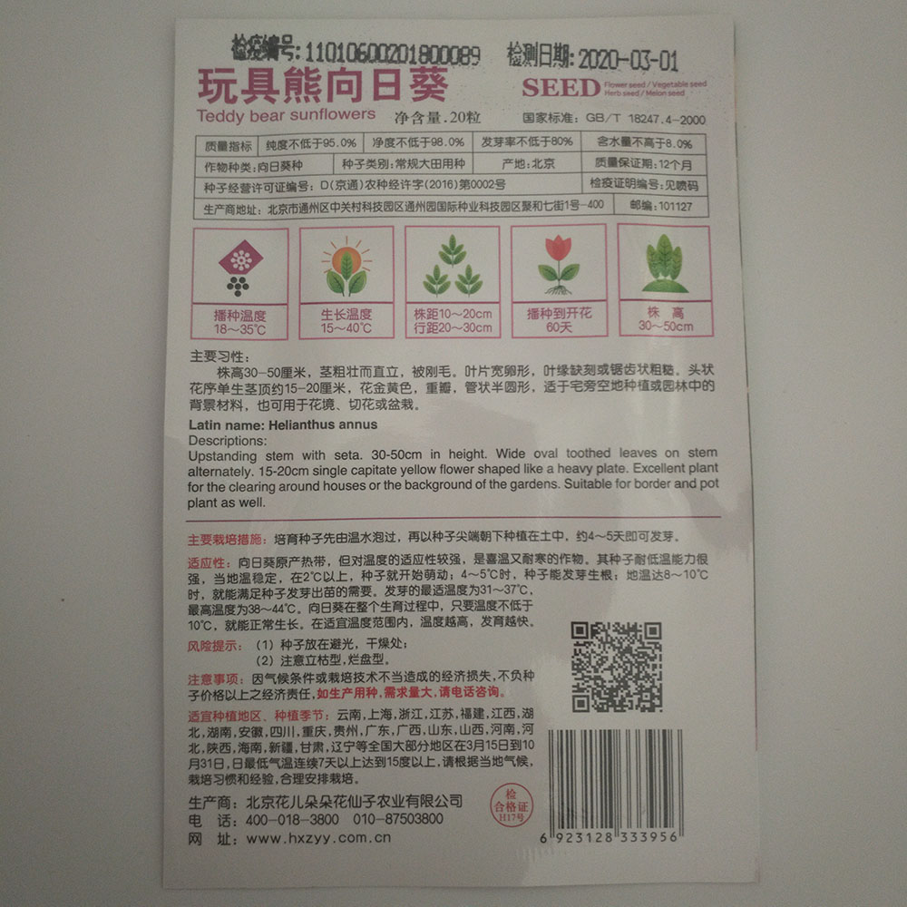 Teddy bear Sunflower seeds 20 seeds/bags