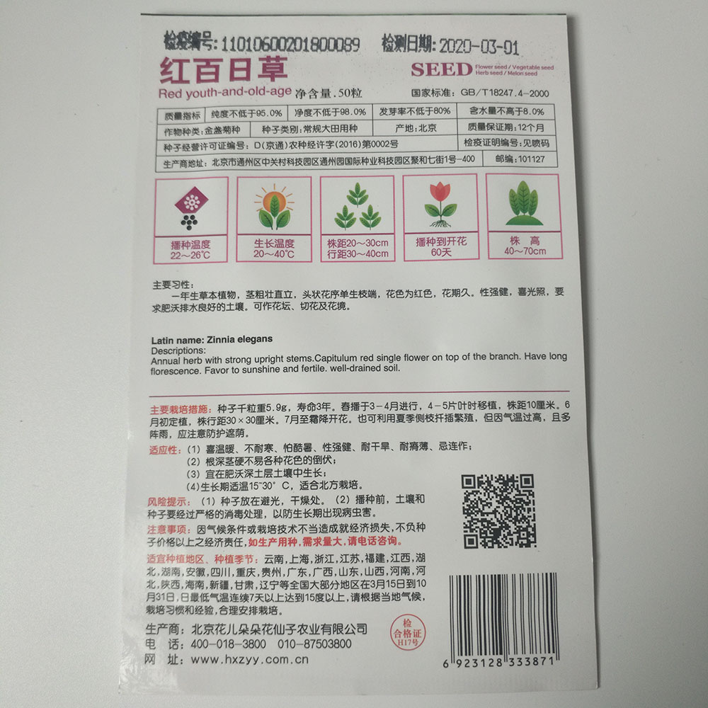 Zinnia seeds 50 seeds/bags