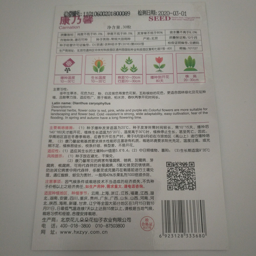 Germination rate:85% Purity:90% neatness:95% package:Small bags