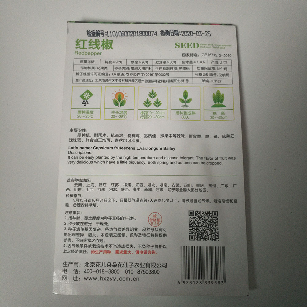 Germination rate:85% Purity:90% neatness:95% package:Small bags