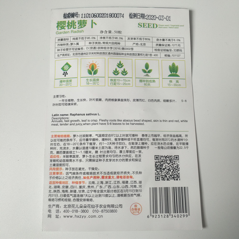 Germination rate:85% Purity:90% neatness:95% package:Small bags