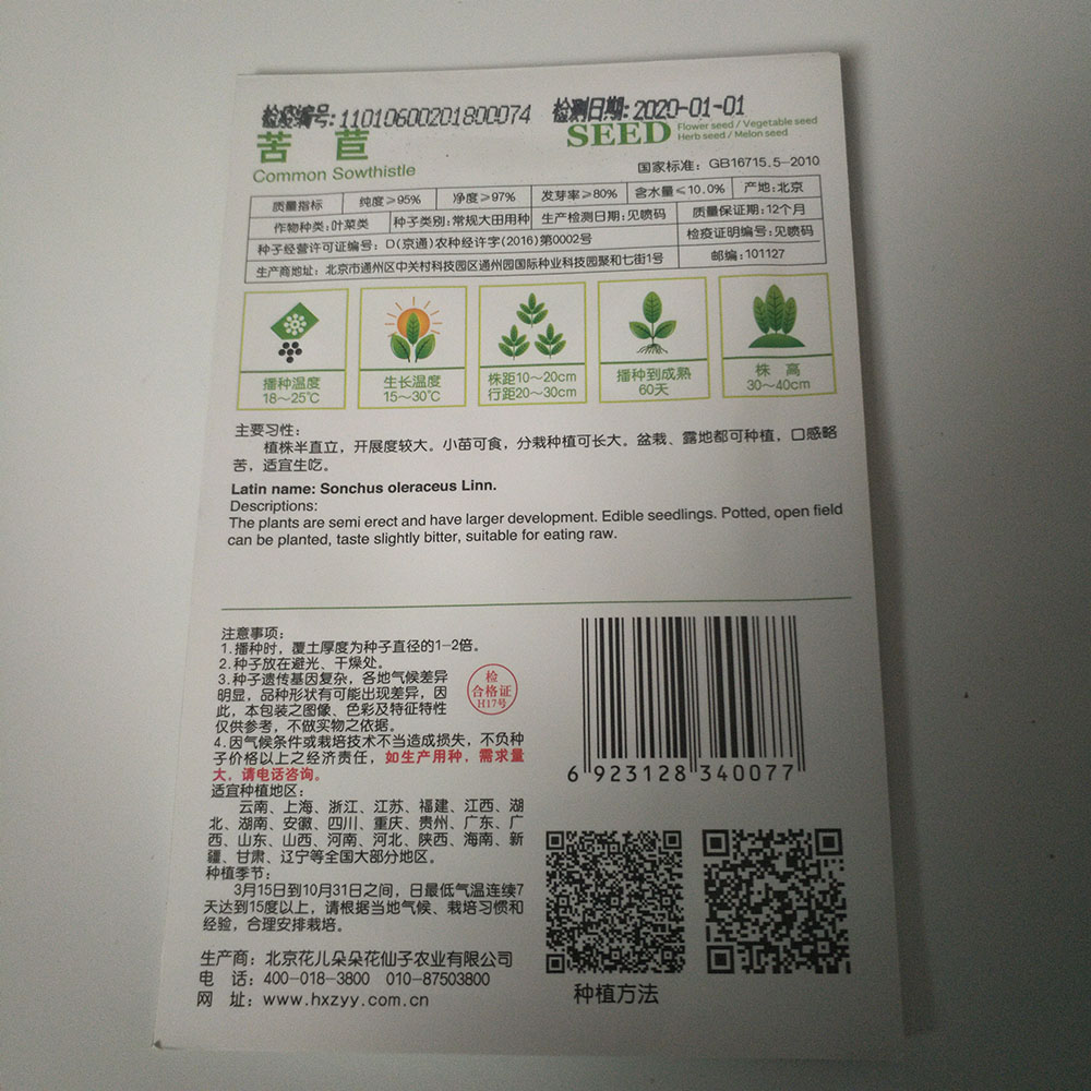 Germination rate:85% Purity:90% neatness:95% package:Small bags