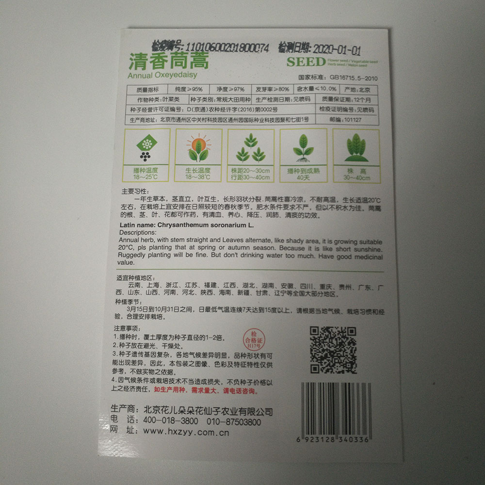 garland chrysanthemum seeds 100 seeds/bags